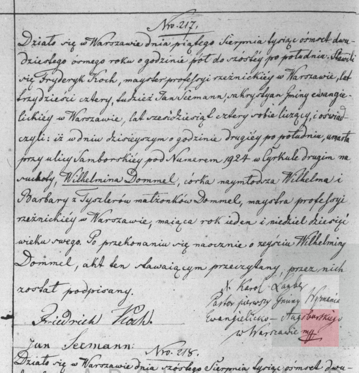 - zgon: Akt zgonu: Warszawa, par. Ewangelicko-Augsburska (obecn. m. Warszawa), 217/1828 http://szukajwarchiwach.pl/72/181/0/-/2/skan/full/mxqt0W5gYehvn-QM0QRWxw [podglad]