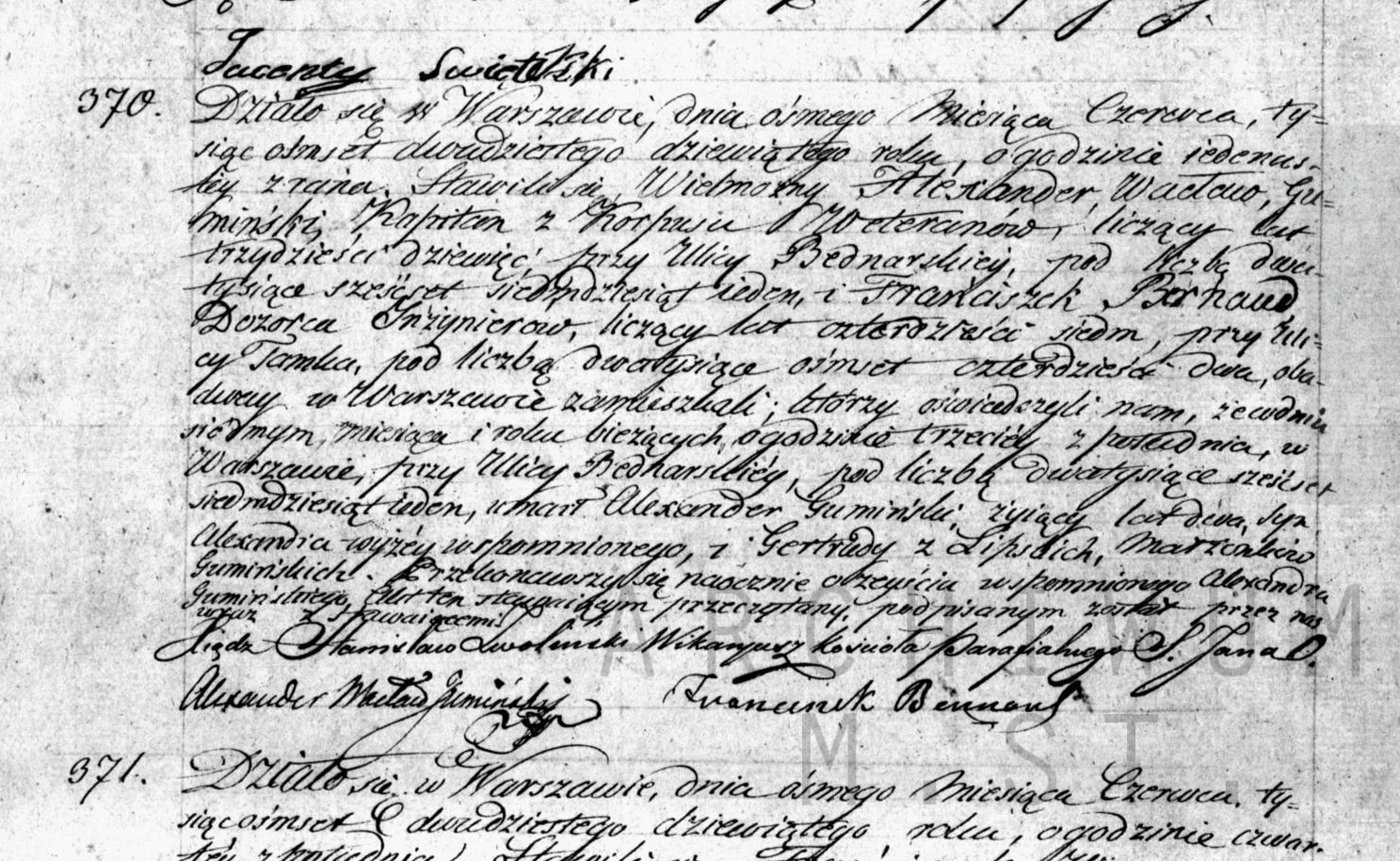 - zgon: Akt zgonu: Warszawa św. Jan (obecn. m. Warszawa), 370/1829 http://szukajwarchiwach.pl/72/161/0/-/4/skan/full/nYGjYO2FL0mIKY6wow-YFw [podglad]