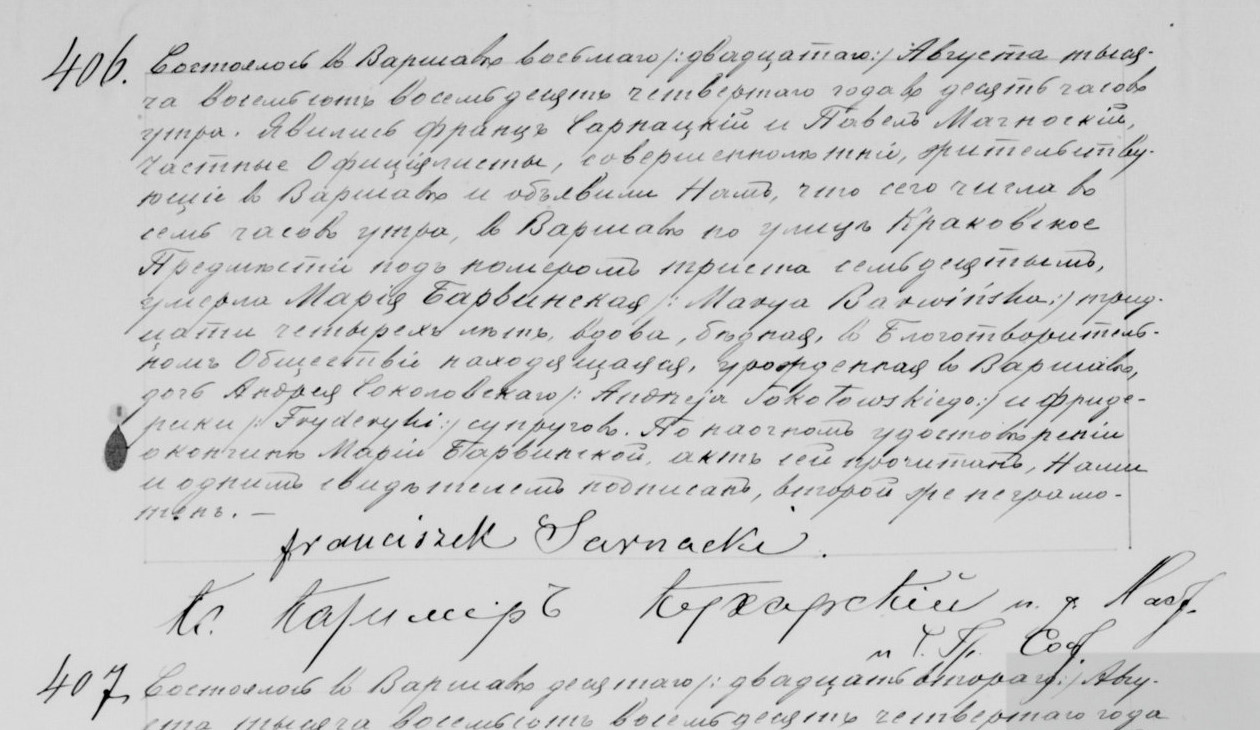 - ślub 2: Akt małżeństwa: Warszawa św. Aleksander (obecn. m. Warszawa), rok 1868, nr aktu 96 [indeks na http://geneteka.genealodzy.pl/] http://metryki.genealodzy.pl/metryki.php?op=kt&ar=8&zs=9214d&sy=307&kt=3 [podgląd] - zgon: Akt zgonu: Warszawa św. Jan (obecn. m. Warszawa), 406/1884 http://metryki.genealodzy.pl/metryki.php?op=kt&ar=8&zs=9233d&sy=532&kt=2 [podglad]