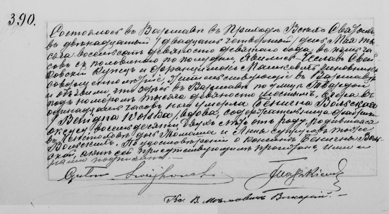 - ślub: Akt małżeństwa: Żarnów (obecn. woj. łódz.), rok 1834, nr aktu 30 [indeks na http://geneteka.genealodzy.pl/] - zgon: Akt zgonu: Warszawa Wszystkich Świętych (obecn. m. Warszawa), 390/1899 http://localhost/mjm/wwswietych_1899_1219_101_0066.jpg [podglad] - pogrzeb: Urz. M. st.W-wy http://cmentarze.um.warszawa.pl/pomnik.aspx?pom_id=54082