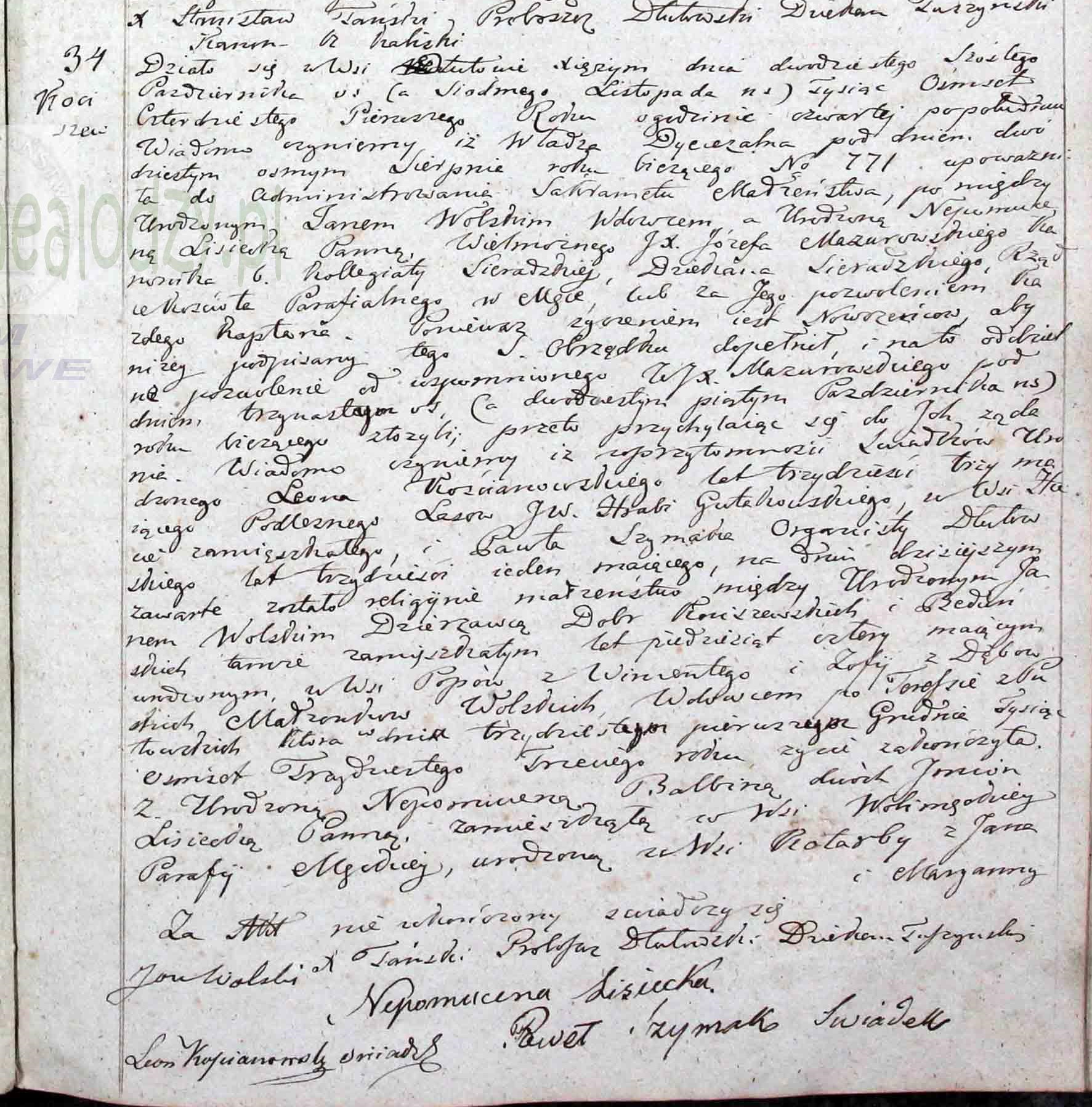 - ślub: Akt małżeństwa: Dłutów (obecn. woj. łódz.), rok 1841, nr aktu 34 [indeks na http://geneteka.genealodzy.pl/] http://metryki.genealodzy.pl/metryki.php?op=kt&ar=3&zs=1454d&sy=1841&kt=2 [podgląd]