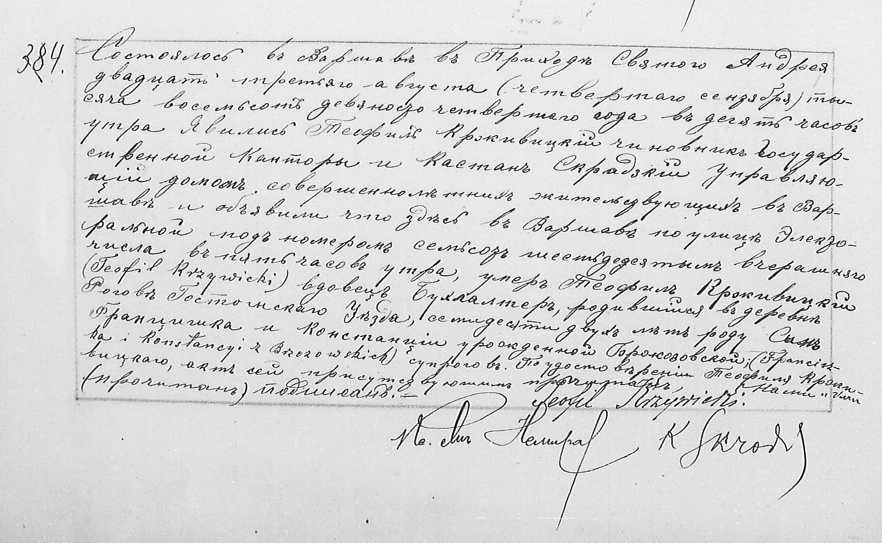 - zgon: Akt zgonu: Warszawa św. Andrzej (obecn. m. Warszawa), 384/1894 http://metryki.genealodzy.pl/metryki.php?op=kt&ar=1&zs=0159d&sy=1894&kt=3 [podglad]
