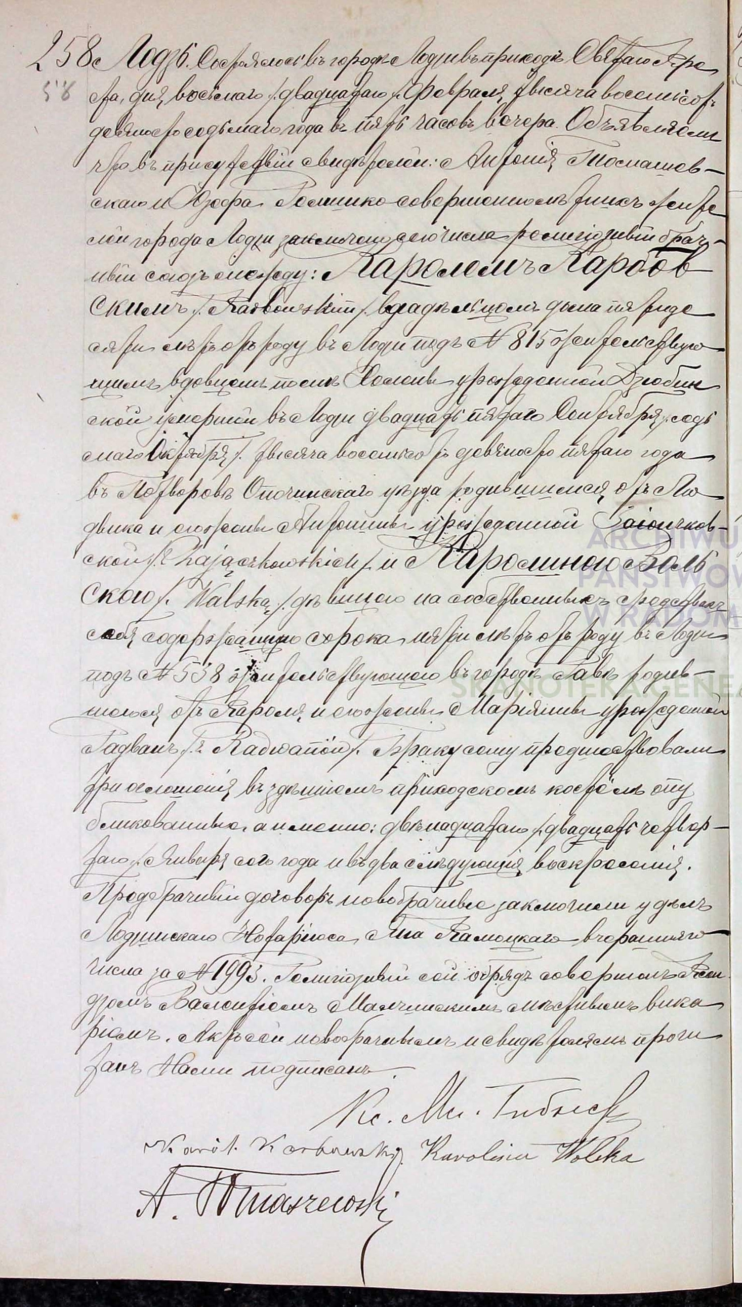 - ślub: Akt małżeństwa: Łódź św. Krzyż (obecn. woj. łódz.), rok 1897, nr aktu 258 [indeks na http://geneteka.genealodzy.pl/] http://metryki.genealodzy.pl/metryki.php?op=kt&ar=3&zs=1563d&sy=1897&kt=6 [podgląd]