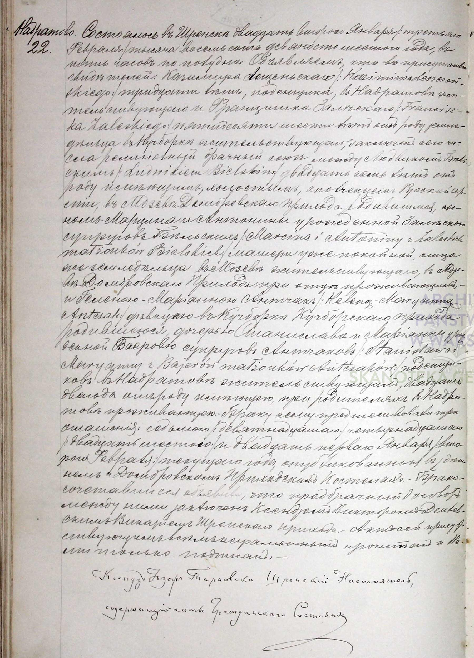 - ślub: Akt małżeństwa: Szreńsk (obecn. woj. mazow.), rok 1896, nr aktu 22 [indeks na http://geneteka.genealodzy.pl/] http://metryki.genealodzy.pl/metryki.php?op=kt&ar=13&zs=0616d&sy=1896&kt=2 [podgląd]