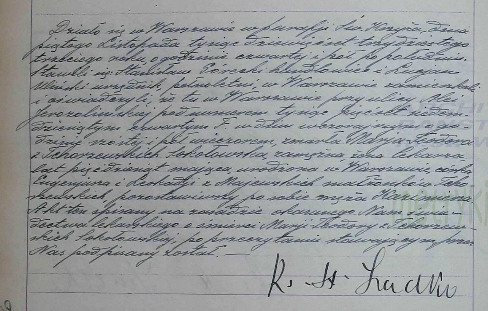 - ślub: Akt małżeństwa: Warszawa-Leszno Narodzenie NMP (obecn. m. Warszawa), rok 1904, nr aktu 159 [indeks na http://geneteka.genealodzy.pl/] http://metryki.genealodzy.pl/metryki.php?op=kt&ar=1&zs=1217d&sy=1904c&kt=3 [podgląd] - zgon: Akt zgonu: Warszawa św. Krzyż (obecn. m. Warszawa), 269/1933 http://metryki.genealodzy.pl/metryki.php?op=kt&ar=1&zs=0158d&sy=1933&kt=3 [podglad] - pogrzeb: Urz. M. st.W-wy http://cmentarze.um.warszawa.pl/pomnik.aspx?pom_id=27342