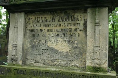 - Stanisław Kostka Sebastian Jagodziński h. Korwin (ID: 1.295.226), urzędnik Królestwa Polskiego 1792–1871 (r.: Stanisław i Bogumiła Zakrzewska) × Antonina Bielińska, Wiktoria Bagniewska z Bagniewa h. Bawola Głowa