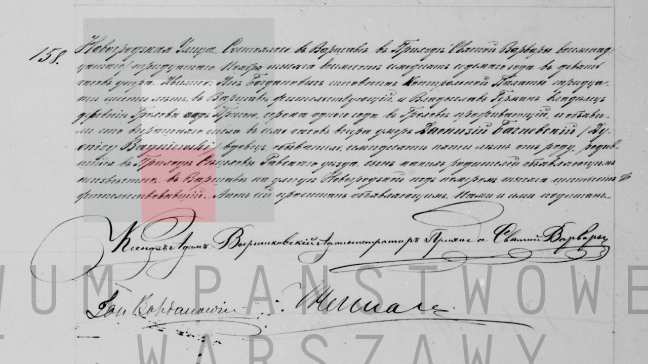 | psb.22705.3 | sw.202242 | sw.202243 (1.295.47) | sw.202244 (1.295.68) | Akt małżeństwa: Warszawa św. Aleksander (obecn. m. Warszawa), 102/1869 [indeks na http://geneteka.genealodzy.pl/] http://metryki.genealodzy.pl/metryki.php?op=kt&ar=1&zs=0162d&sy=1869&kt=2 [podgląd] |