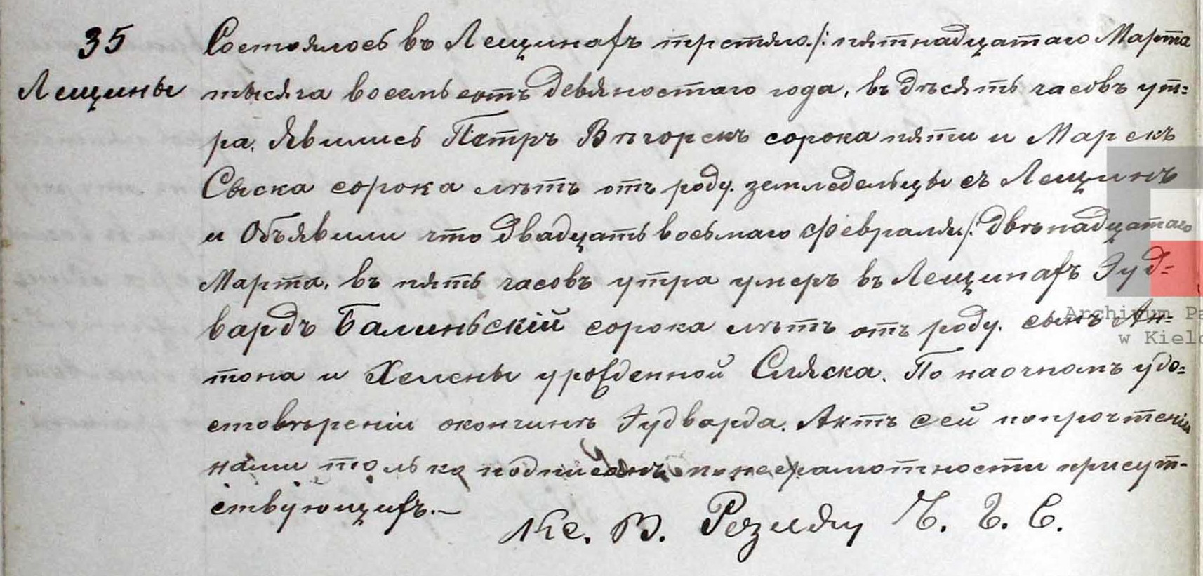 | genetekaz.1747495 | 12 | mar | 1890 | | xpar.1087 | Akt zgonu: Leszczyny (obecn. woj. świętok.), 35/1890 [podglad] | | Akt zgonu obecny w bazie Geneteka |