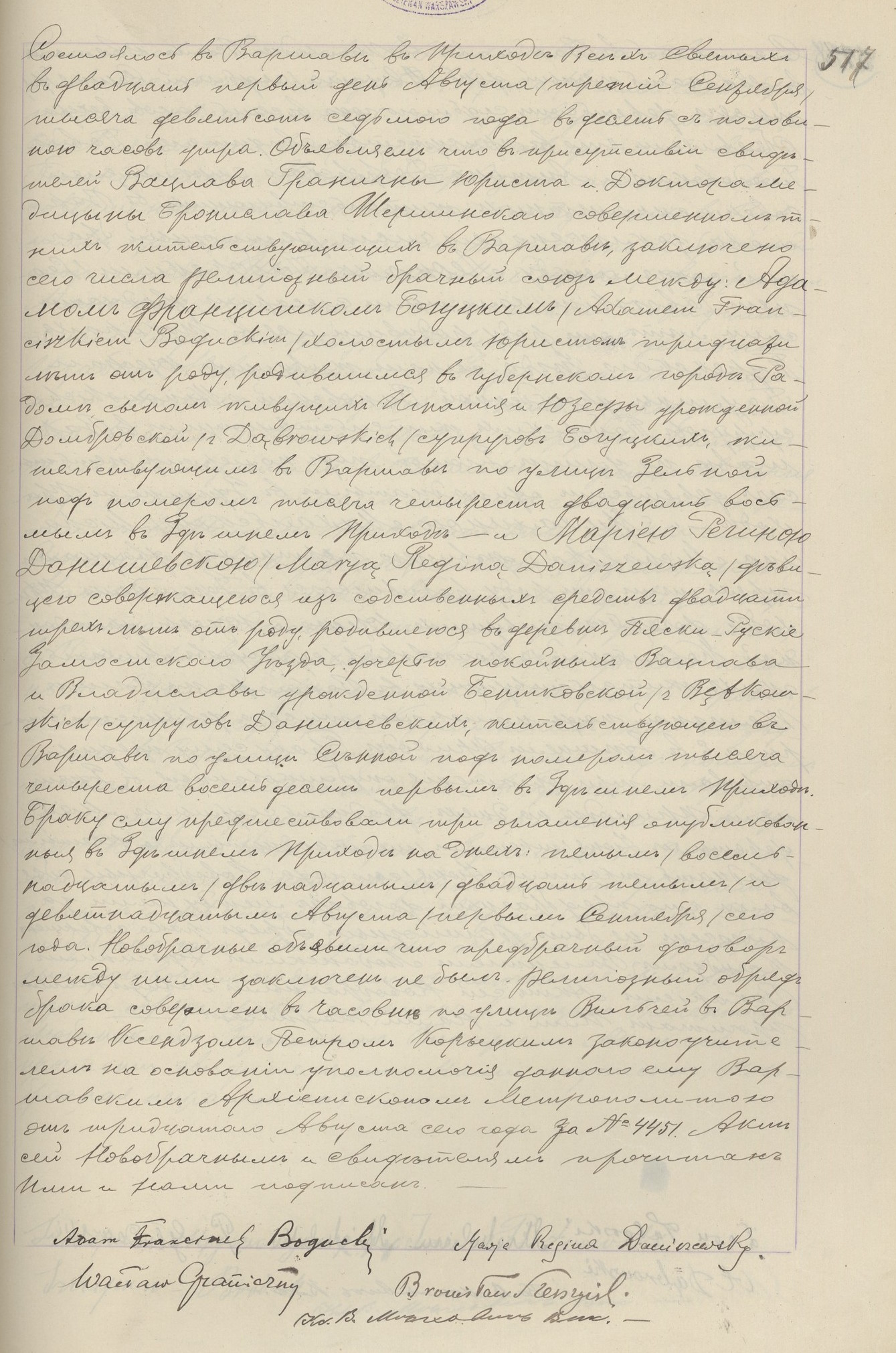 | psb.21137.4 | sw.207795 | 1.635.82 (4.167.13) | 1.635.81 (1.635.81) | Akt małżeństwa: Warszawa św. Aleksander (obecn. m. Warszawa), 379/1898 [indeks na http://geneteka.genealodzy.pl/] http://metryki.genealodzy.pl/metryki.php?op=kt&ar=1&zs=0162d&sy=1898b&kt=2 [podgląd] |