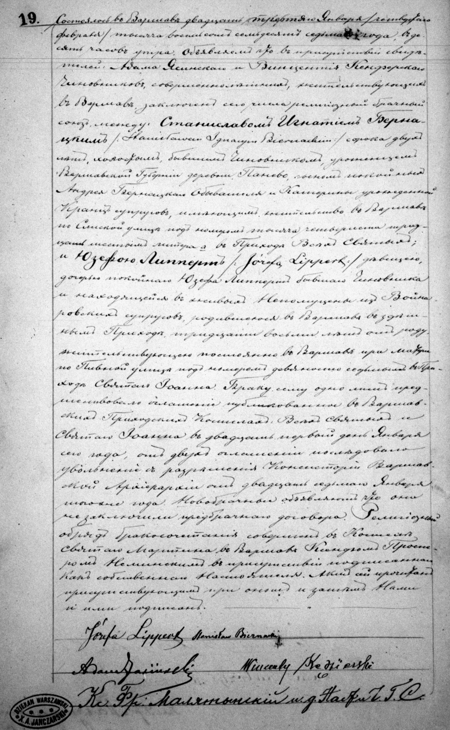 | sw.1095285 | sw.1095285 | sw.1095286 (1.943.371) | sw.1095287 (1.943.372) | Akt małżeństwa: Warszawa św. Jan (obecn. m. Warszawa), 19/1877 [indeks na http://geneteka.genealodzy.pl/] http://metryki.genealodzy.pl/metryka.php?ar=1&zs=0161d&sy=1877&kt=2&skan=018-019.jpg [podgląd] |