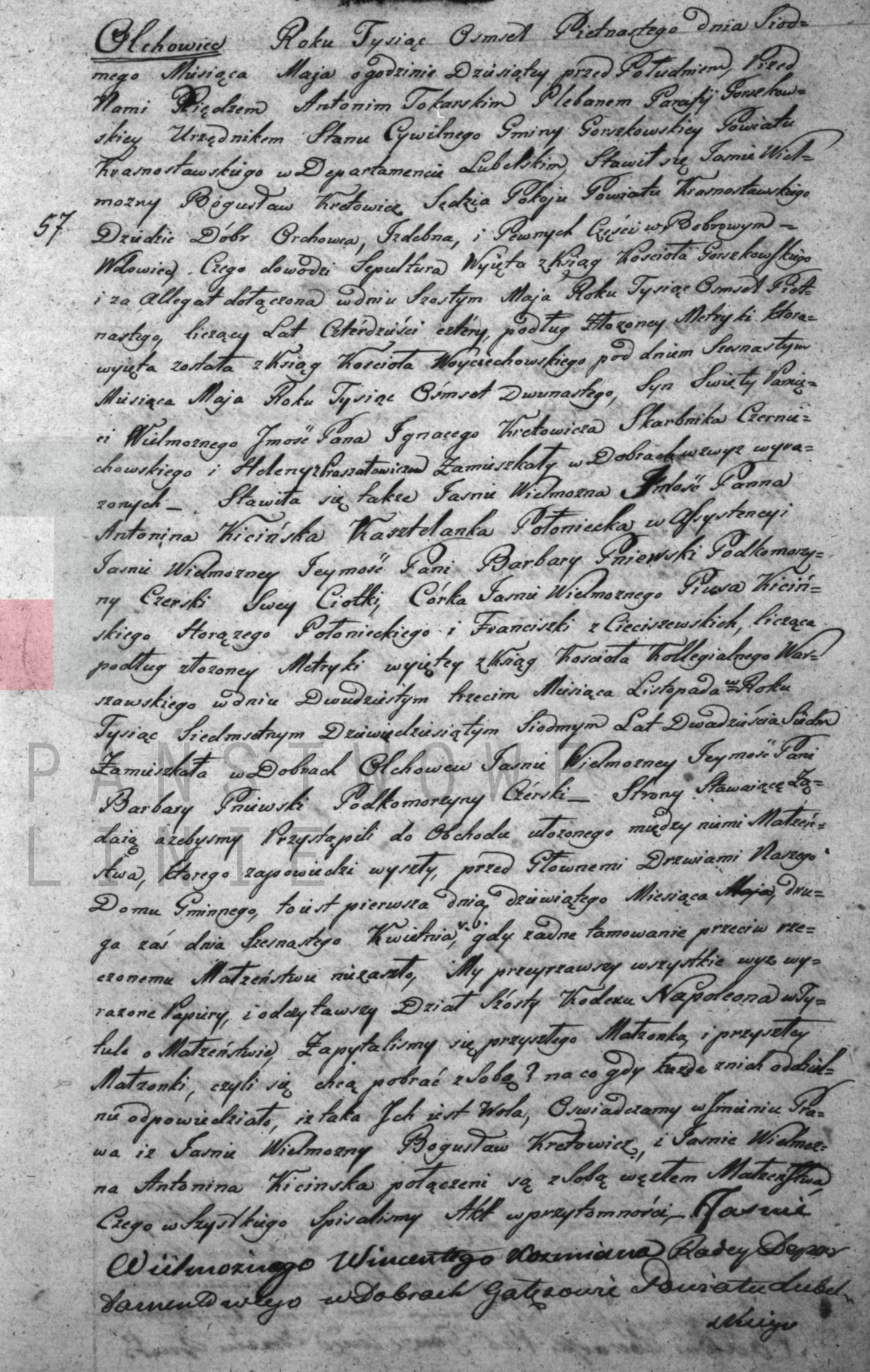 | 10.20.61 | 12.357.9 (12.357.9) | 1815 | xpar.163 | Akt małżeństwa: Gorzków (obecn. woj. lubel.), rok 1815, nr aktu 57 [indeks na http://lubgens.eu/] https://szukajwarchiwach.pl/35/1821/0/1/19/skan/full/gpOL5IJbOb2HffQlwm1cYQ [podgląd] | Akt ślubu obecny w bazie Lubgens | |||||