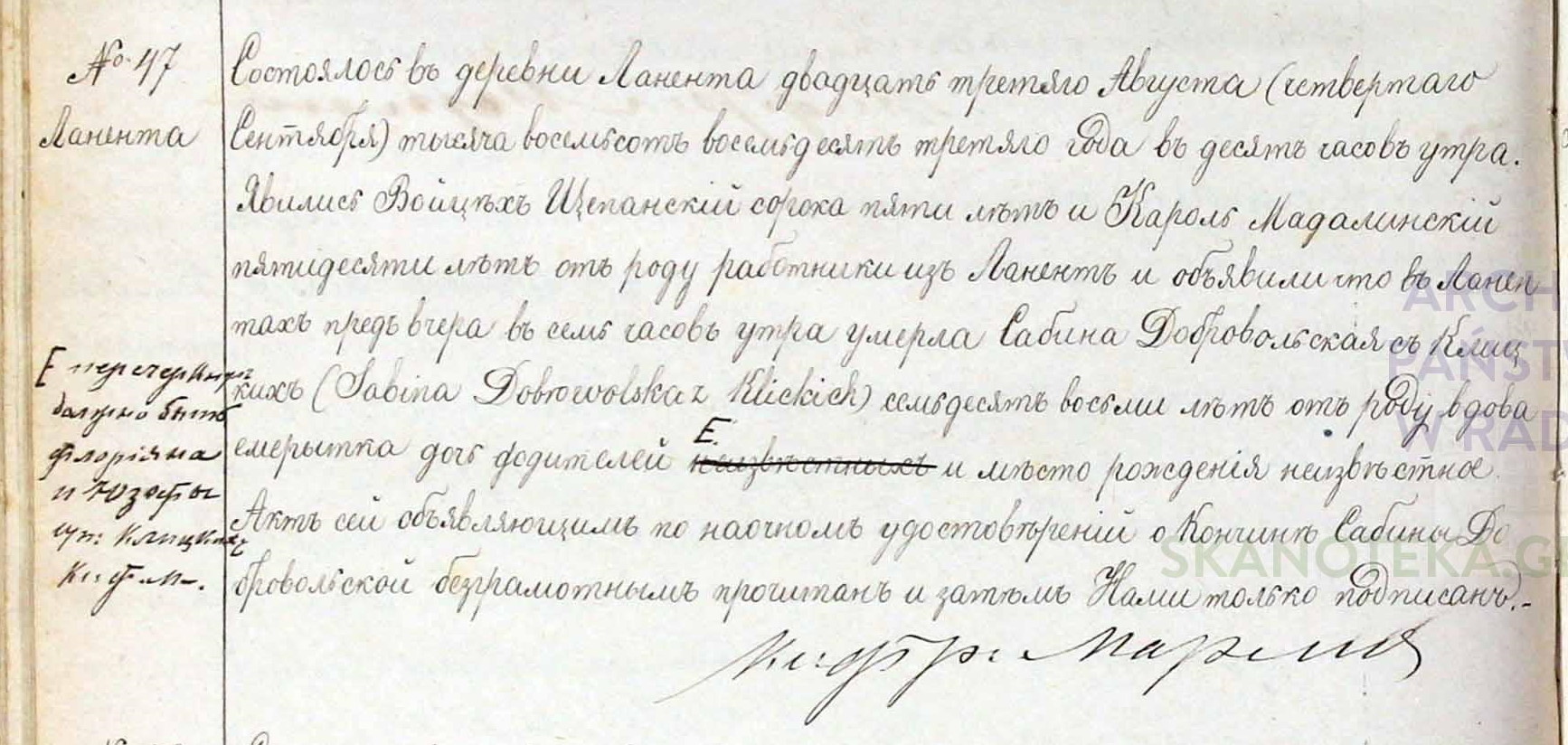 | 4.550.12 | sw.1043920 | 10.248.110 (10.248.110) | le.3525.4.9 (le.3525.4.9) | Akt zgonu: Łanięta (obecn. woj. łódz.), 47/1883 [indeks na http://geneteka.genealodzy.pl/] http://metryki.genealodzy.pl/metryki.php?op=kt&ar=3&zs=1551d&sy=1883&kt=3 [podgląd] |