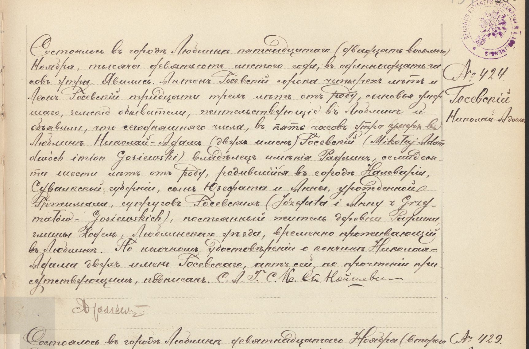 | insertonline.44837 | 28 | nov | 1906 | | xpl.lublin | https://wielcy.pl/wgm/?m=NG&t=PN&n=10.522.525; http://www.gosiewski.eu/getperson.php?personID=I113&tree=Gosiewscy; -- Informacja p. Jana Gosiewskiego (z 9.4.2020) | | Uzupełnienia użytkowników wprowadzane online |