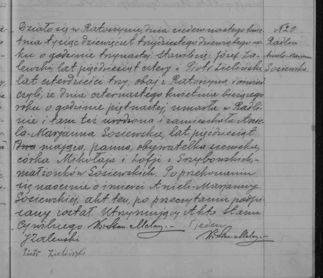 | insertonline.9470 | 28 | nov | 1906 | | xpl.radlin | Z dziennika Stafanii z Gosiewskich Boduszyńskiej - córki Mikołaja Gosiewskiego oraz z napisu na grobowcu -- Informacja p. Marii Hornung (z 18.3.2014) | | Uzupełnienia użytkowników wprowadzane online |