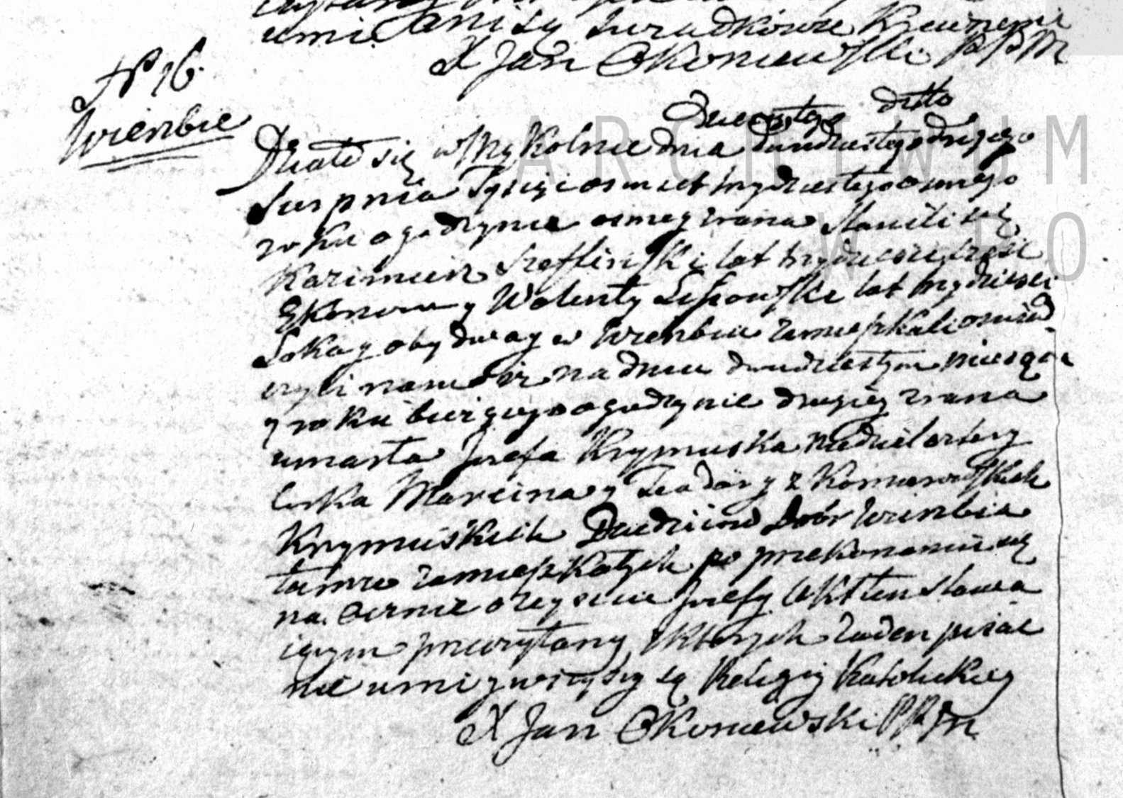 | 10.720.189 | 13.62.14 (13.62.14) | 24 | nov | 1824 | xpar.566 | Akt małżeństwa: Glinianka (obecn. woj. mazow.), rok 1824, nr aktu 171 [indeks na http://geneteka.genealodzy.pl/] https://szukajwarchiwach.gov.pl/jednostka/-/jednostka/11732187 | Akt ślubu obecny w bazie Geneteka | |||