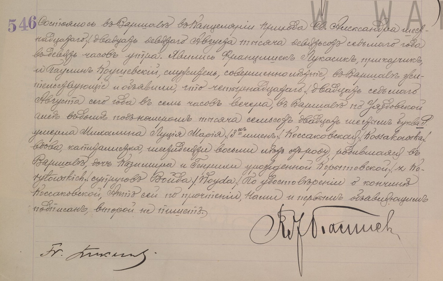 | genetekaz.11343743 | 7 | aug | 1907 | | xpar.1442 | Akt zgonu: Warszawa św. Aleksander (obecn. m. Warszawa), 546/1907 http://localhost/mjm/aleksander_1907_159_35_0414.jpg [podglad] | | Akt zgonu obecny w bazie Geneteka |
