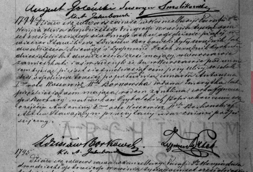 | 11.442.30 | sw.568243 (sw.568243) | | | 1836 | | xpar.1450 | Akt małżeństwa: Warszawa św. Krzyż (obecn. m. Warszawa), rok 1836, nr aktu 196 [indeks na http://geneteka.genealodzy.pl/] http://metryki.genealodzy.pl/metryki.php?op=kt&ar=1&zs=0158d&sy=1836&kt=2 [podgląd] | | | Akt ślubu obecny w bazie Geneteka |