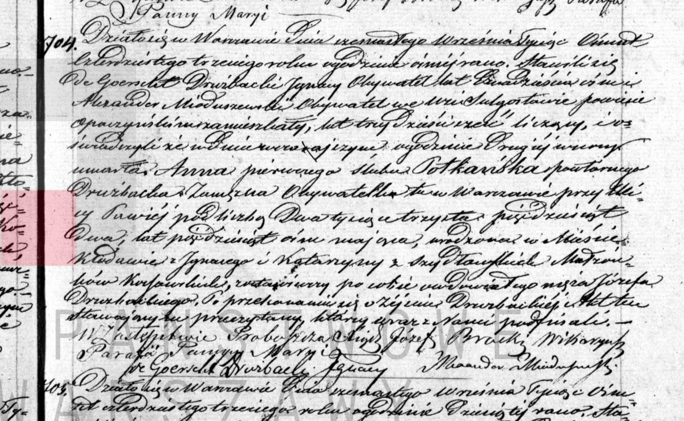 | sw.187290 | | | | ABT 1785 | | | | „Kurier Warszawski” nr 244 z 16.09.1843 - wypisał p. Jan Leopold - 1v Potkańska 2v Drużbacka, żyła lat 58 |
