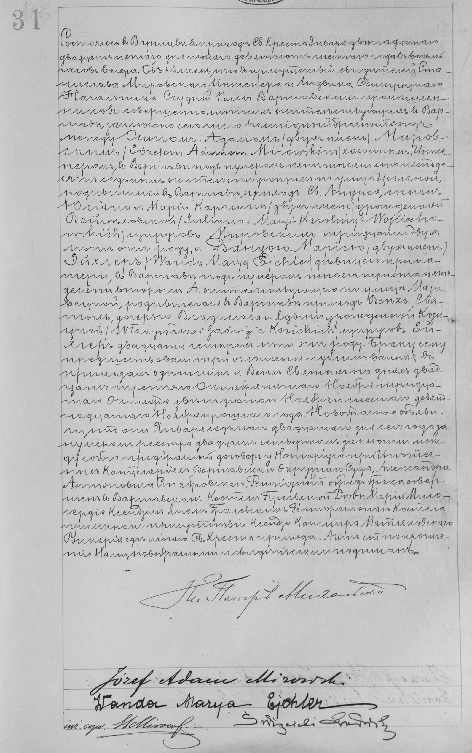 | sw.289842 | sw.289843 (12.110.188) | sw.289844 (12.110.189) | Akt małżeństwa: Warszawa św. Krzyż (obecn. m. Warszawa), 295/1880 [indeks na http://geneteka.genealodzy.pl/] http://metryki.genealodzy.pl/metryki.php?op=kt&ar=1&zs=0158d&sy=1880b&kt=2 [podgląd] |