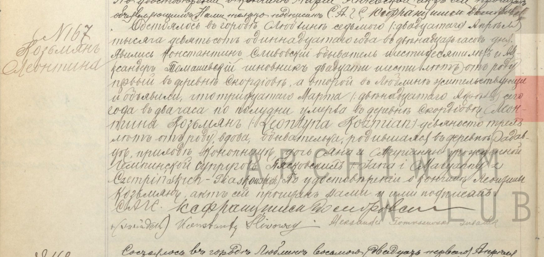 | lubgensz.760016 | 12 | apr | 1911 | | xpar.183 | Akt zgonu: Lublin (św. Jana) (obecn. woj. lubel.), 167/1911 http://szukajwarchiwach.pl/35/1859/0/2.4/97/skan/full/UkjGPM1nJ3EGys23L6Uaaw [podglad] | | Akt zgonu obecny w bazie Lubgens |