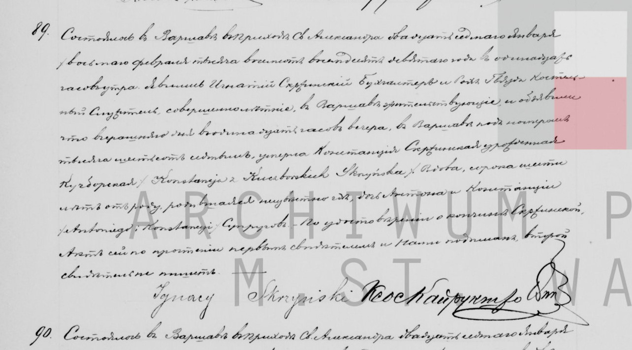 | genetekaz.7343924 | 7 | feb | 1889 | | xpar.1442 | Akt zgonu: Warszawa św. Aleksander (obecn. m. Warszawa), 89/1889 http://szukajwarchiwach.pl/72/162/0/-/113/str/1/3/100#tabSkany [podglad] | | Akt zgonu obecny w bazie Geneteka |