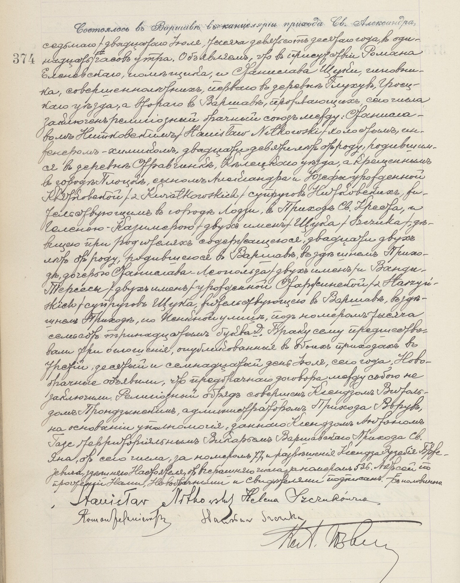 | sw.202099 | sw.289545 | sw.289546 (13.553.61) | sw.289547 (13.553.60) | Akt małżeństwa: Warszawa św. Aleksander (obecn. m. Warszawa), 374/1910 [indeks na http://geneteka.genealodzy.pl/] http://metryki.genealodzy.pl/metryka.php?ar=8&zs=9214d&sy=326&kt=1&skan=374.jpg [podgląd] |