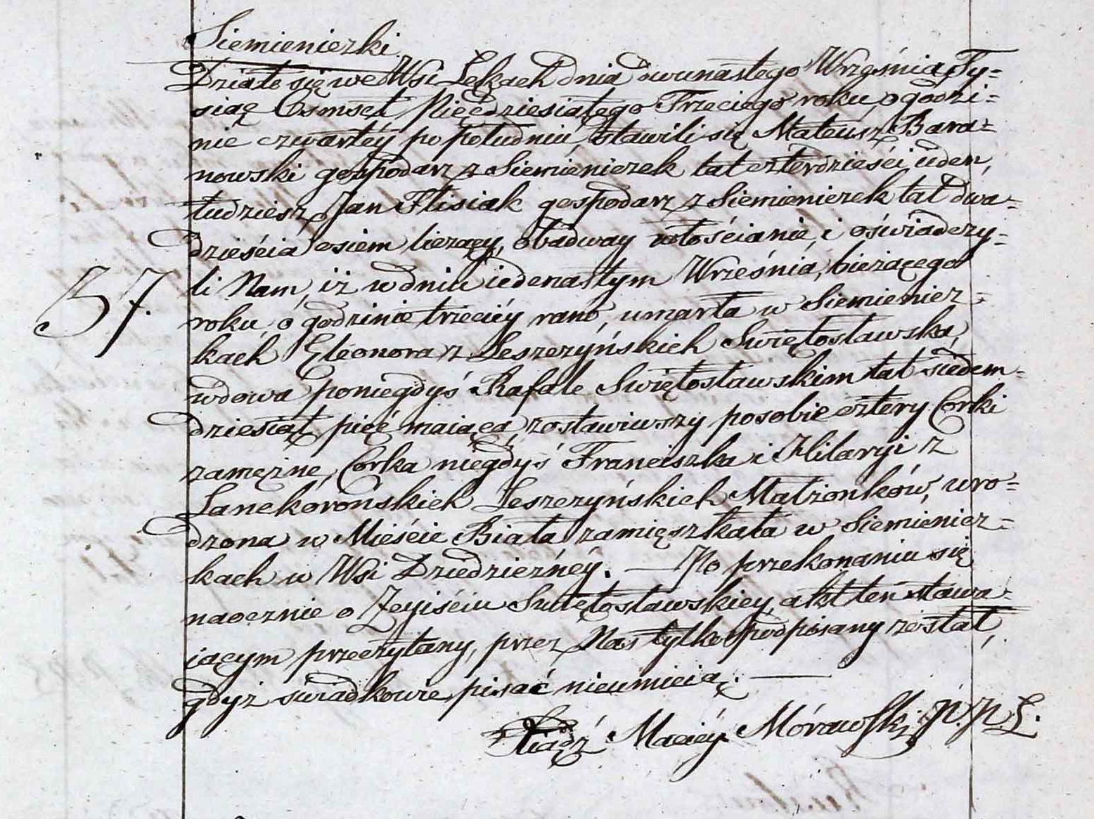 | kurwar.10800 | 11 | sep | 1853 | | Siemieniczki, pow. Kutno | Nekrolog: Kurier Warszawski 244/1853 | | Nekrolog w Kurierze Warszawskim |