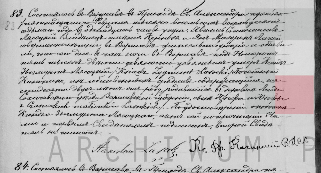 | genetekaz.3216050 | 15 | feb | 1887 | | xpar.1442 | Akt zgonu: W-wa św. Aleksander (obecn. m. Warszawa), 83/1887 http://localhost/mjm/aleksander_1887_158_123_0332.jpg [podglad] | | Akt zgonu obecny w bazie Geneteka |