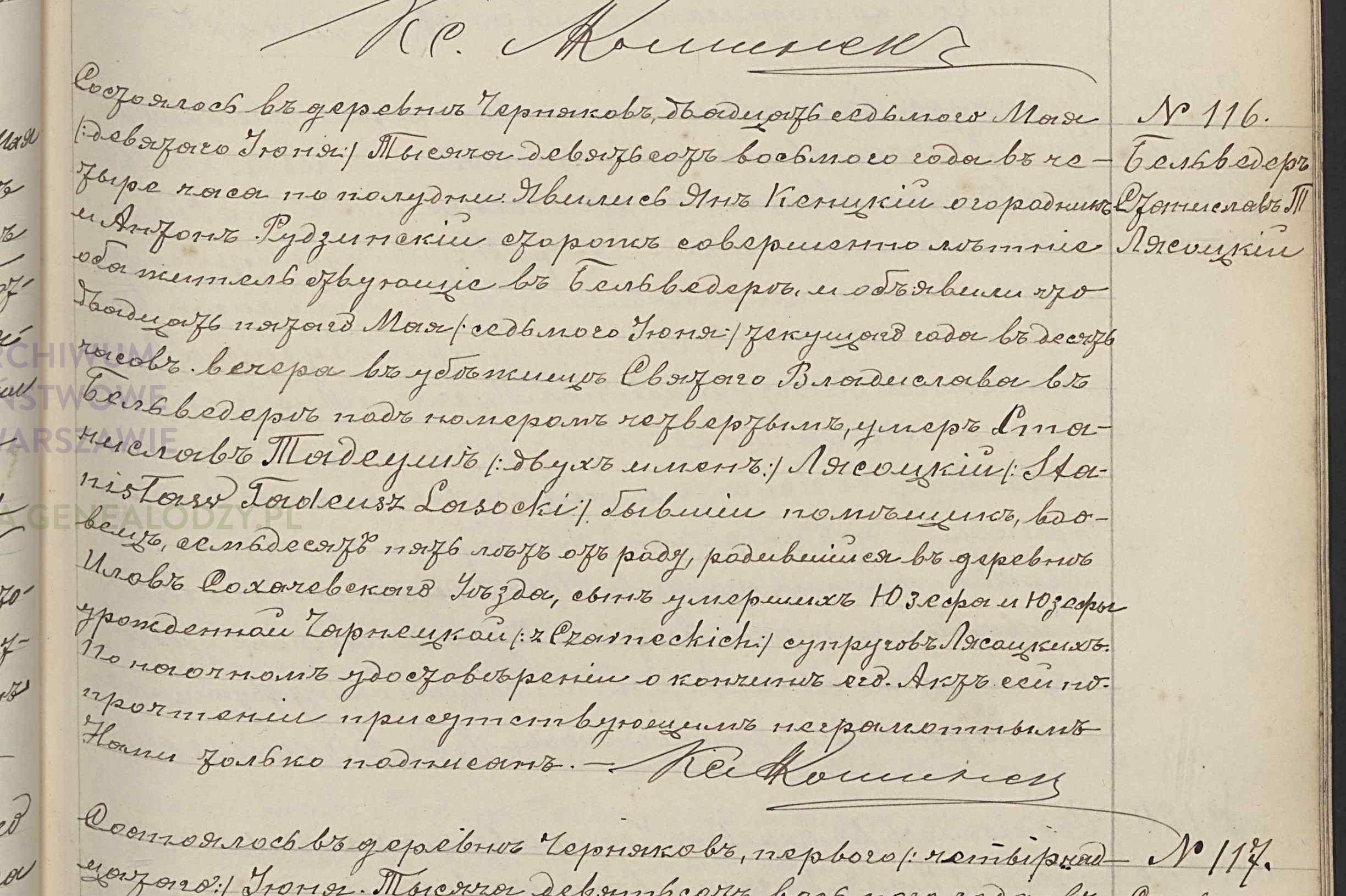 | genetekaz.7882222 | 7 | jun | 1908 | | xpar.3877 | Akt zgonu: Warszawa-Czerniaków św. Bonifacy (obecn. m. Warszawa), 116/1908 http://metryki.genealodzy.pl/metryki.php?op=kt&ar=1&zs=3215d&sy=1907c&kt=2 [podglad] | | Akt zgonu obecny w bazie Geneteka |