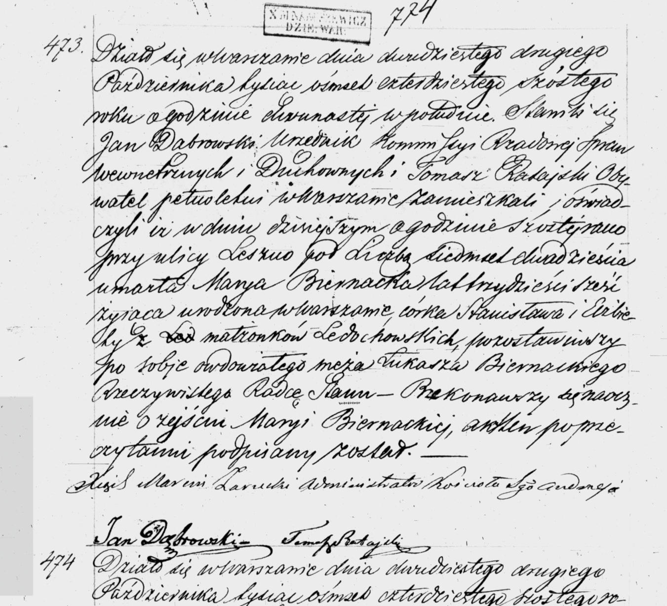 | genetekaz.3537629 | 22 | oct | 1846 | | xpar.1443 | Akt zgonu: Warszawa św. Andrzej (obecn. m. Warszawa), 473/1846 http://szukajwarchiwach.pl/72/159/0/-/16/skan/full/1kHUAv5xNr59af4c4w2qLQ [podglad] | | Akt zgonu obecny w bazie Geneteka |
