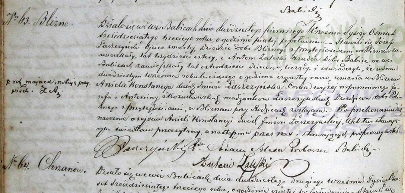 | sw.268460 | sw.268460 | 15.335.110 (15.335.110) | 15.335.111 (15.335.111) | Akt zgonu: Babice (obecn. woj. mazow.), 63/1863 [indeks na http://geneteka.genealodzy.pl/] http://metryki.genealodzy.pl/metryka.php?ar=8&zs=8040d&sy=353&kt=8&plik=61-68.jpg [podgląd] |