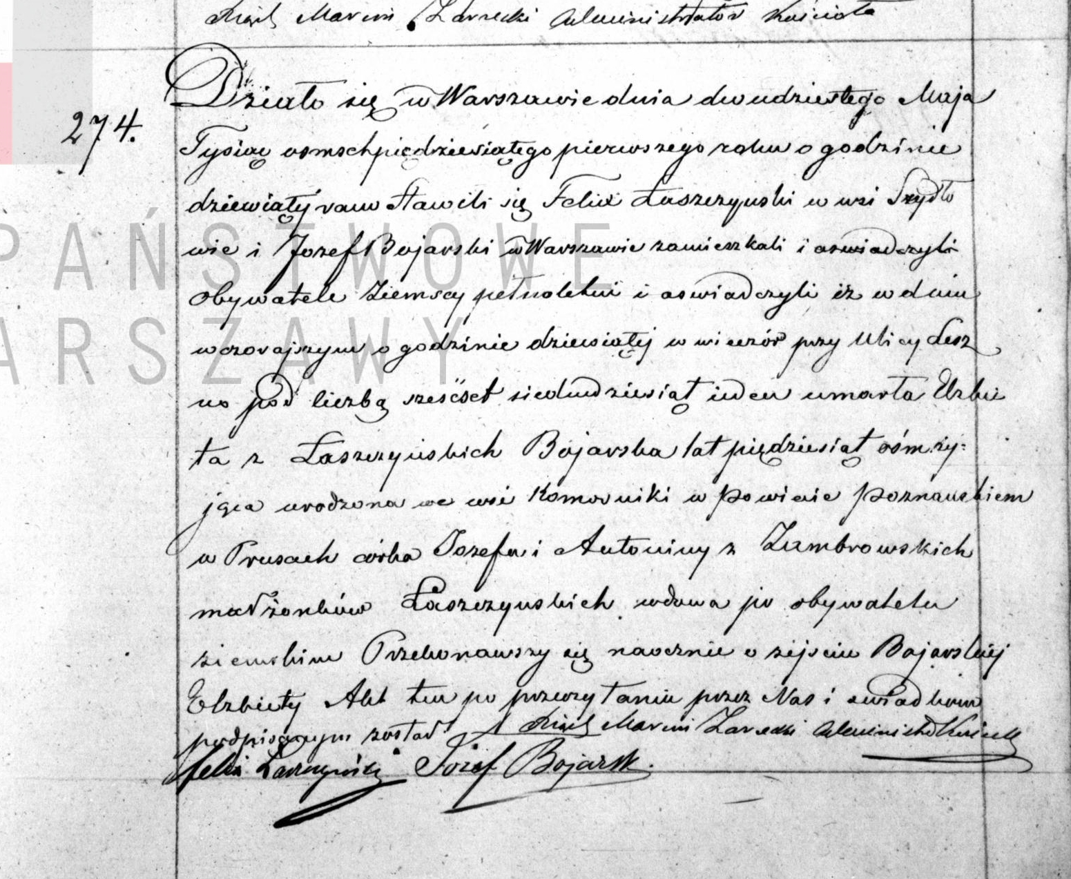 | genetekaz.3469506 | 19 | may | 1851 | | xpar.1443 | Akt zgonu: Warszawa św. Andrzej (obecn. m. Warszawa), 274/1851 http://szukajwarchiwach.pl/72/159/0/-/21/skan/full/gyH3sRYig34jQCLiDAwBbA [podglad] | | Akt zgonu obecny w bazie Geneteka |