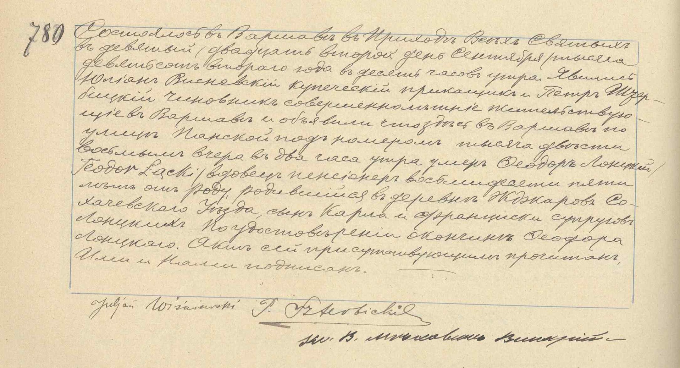 | genetekaz.11461797 | 21 | sep | 1902 | | xpar.1454 | Akt zgonu: Warszawa Wszystkich Świętych (obecn. m. Warszawa), 780/1902 http://localhost/mjm/wwswietych_1902_0778-0783.jpg [podglad] | | Akt zgonu obecny w bazie Geneteka |