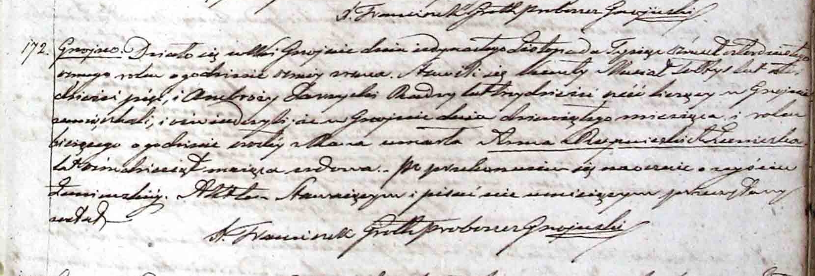| sw.594879 | f | Anna | | | | | Rupniewski | | | | | Akt małżeństwa: Probołowice (obecn. woj. świętok.), 1/1812 [indeks na http://geneteka.genealodzy.pl/] |