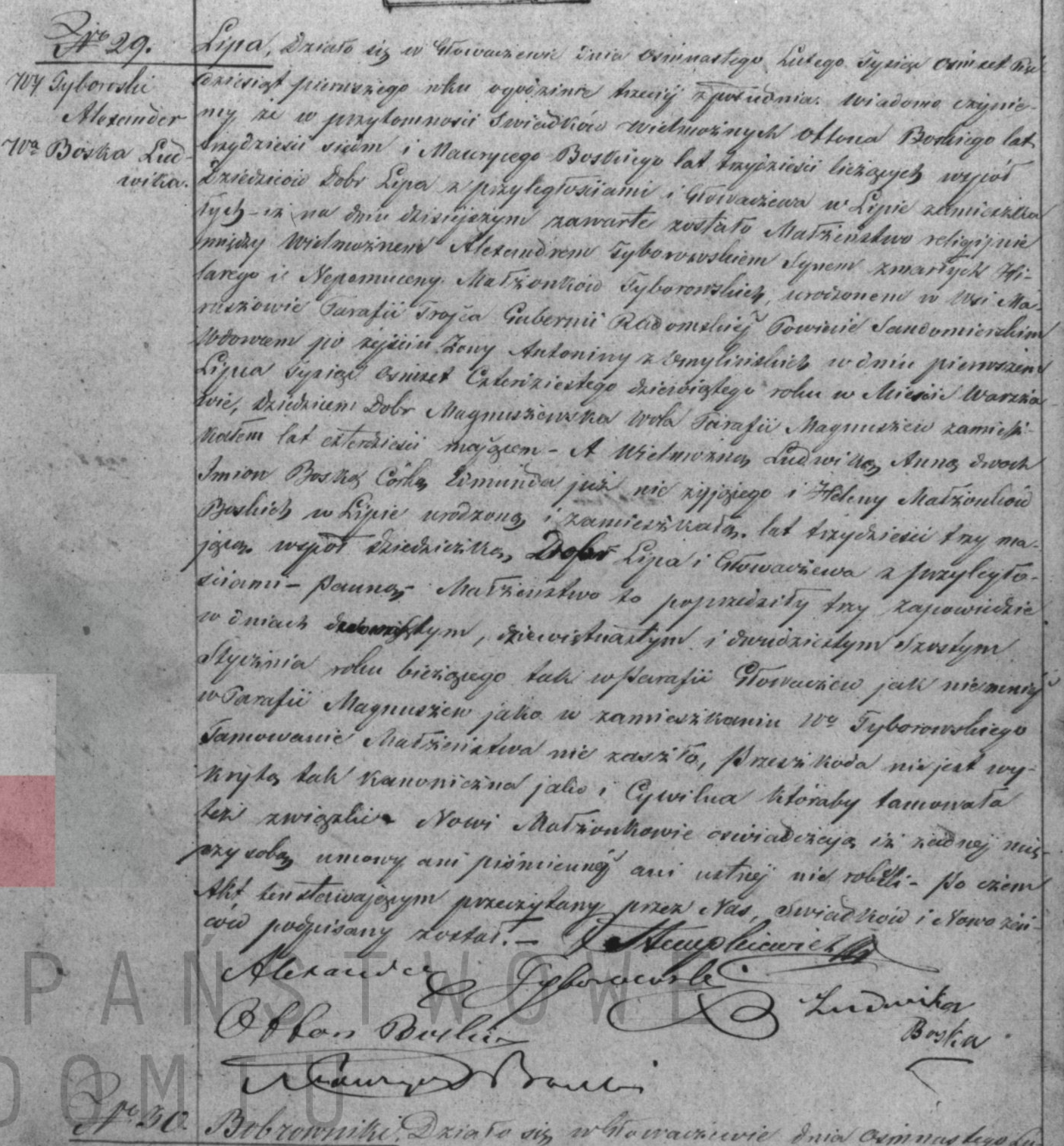 | 2.190.350 | sw.453852 | sw.453853 (2.190.332) | sw.453854 (2.190.460) | Akt małżeństwa: Głowaczów (obecn. woj. mazow.), 29/1851 [indeks na http://geneteka.genealodzy.pl/] http://szukajwarchiwach.pl/58/131/0/1/41/skan/full/y7JWh3afjPovCj_wO4Yrnw [podgląd] |