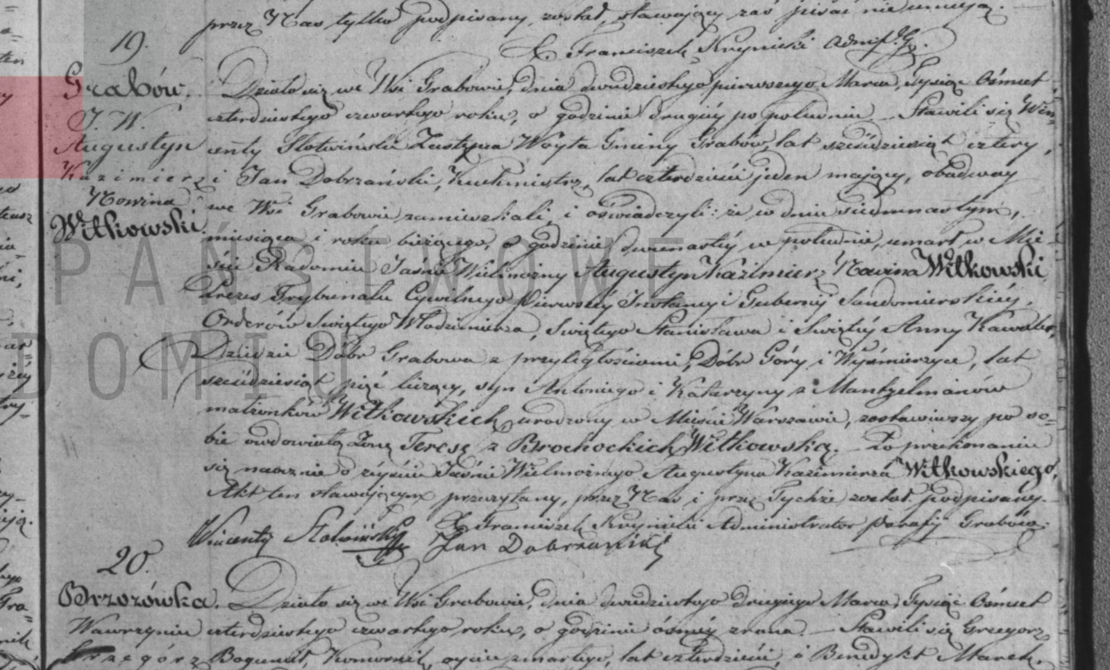 | genetekaz.4376985 | | | 1844 | | xpar.575 | Akt zgonu: Grabów nad Pilicą (obecn. woj. mazow.), 19/1844 http://szukajwarchiwach.pl/58/133/0/1/24/skan/full/olqSSNOVjah8uRDNCycMug [podglad] | | Akt zgonu obecny w bazie Geneteka |