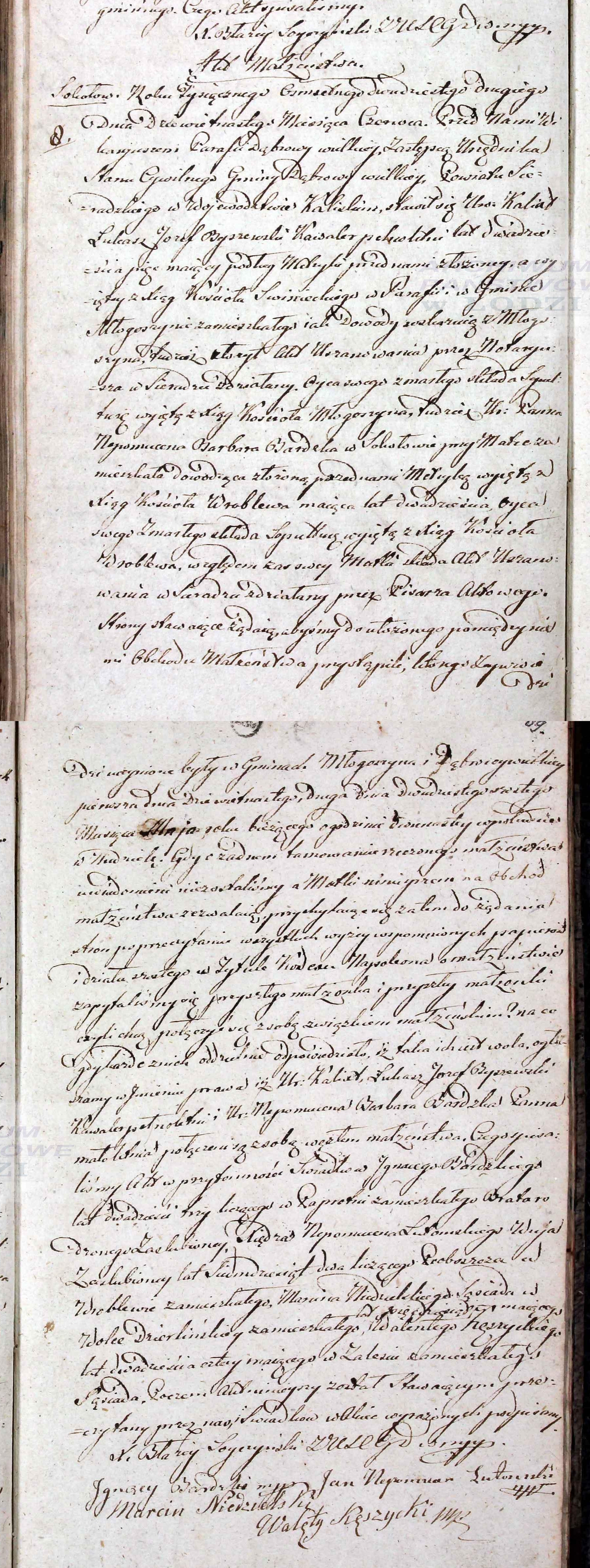 | 2.830.184 | sw.766478 | sw.766479 (2.830.185) | sw.766480 (2.830.186) | Akt małżeństwa: Łowicz Kolegiata (obecn. woj. łódz.), 34/1826 [indeks na http://geneteka.genealodzy.pl/] https://metryki.genealodzy.pl/id225-sy1826 [podgląd] |