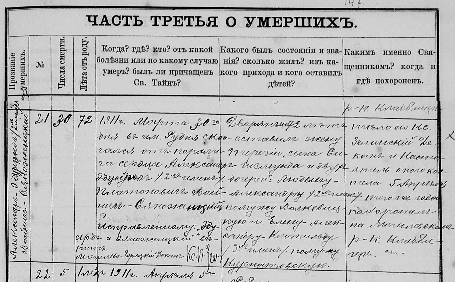 | sw.1019703 | cz.I023462 (cz.I023462) | cz.I023463 (cz.I023463) | Akt zgonu: Mohylew WNMP (obecn. Białoruś), 21/1911 [indeks na http://geneteka.genealodzy.pl/] https://www.familysearch.org/ark:/61903/3:1:3Q9M-CSM4-WSXF-P?i=498&cat=782932 [podgląd] |