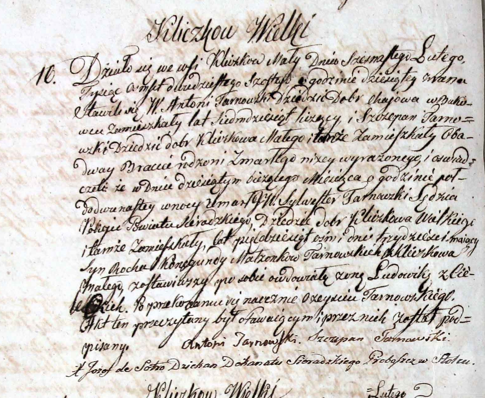 | sw.553548 | | | | AFT 9 FEB 1826 | | | | Akt zgonu: Kliczków Mały (obecn. woj. łódz.), 10/1826 [indeks na http://geneteka.genealodzy.pl/] http://metryki.genbaza.pl/genbaza,detail,142995,3 [podgląd] |