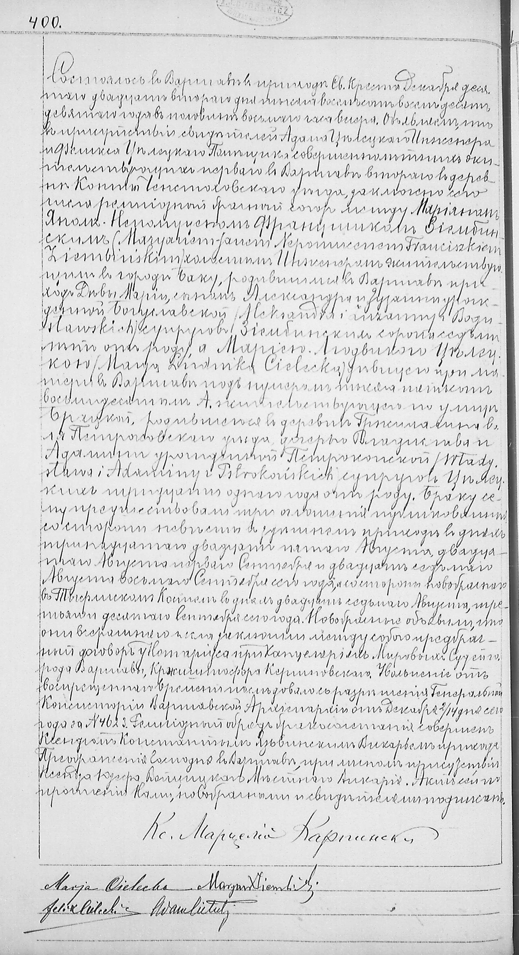 | 3.373.471 | sw.207254 | sw.207255 (3.373.455) | sw.207256 (3.373.468) | Akt małżeństwa: Warszawa św. Krzyż (obecn. m. Warszawa), 400/1889 [indeks na http://geneteka.genealodzy.pl/] http://metryki.genealodzy.pl/metryki.php?op=kt&ar=1&zs=0158d&sy=1889b&kt=2 [podgląd] |