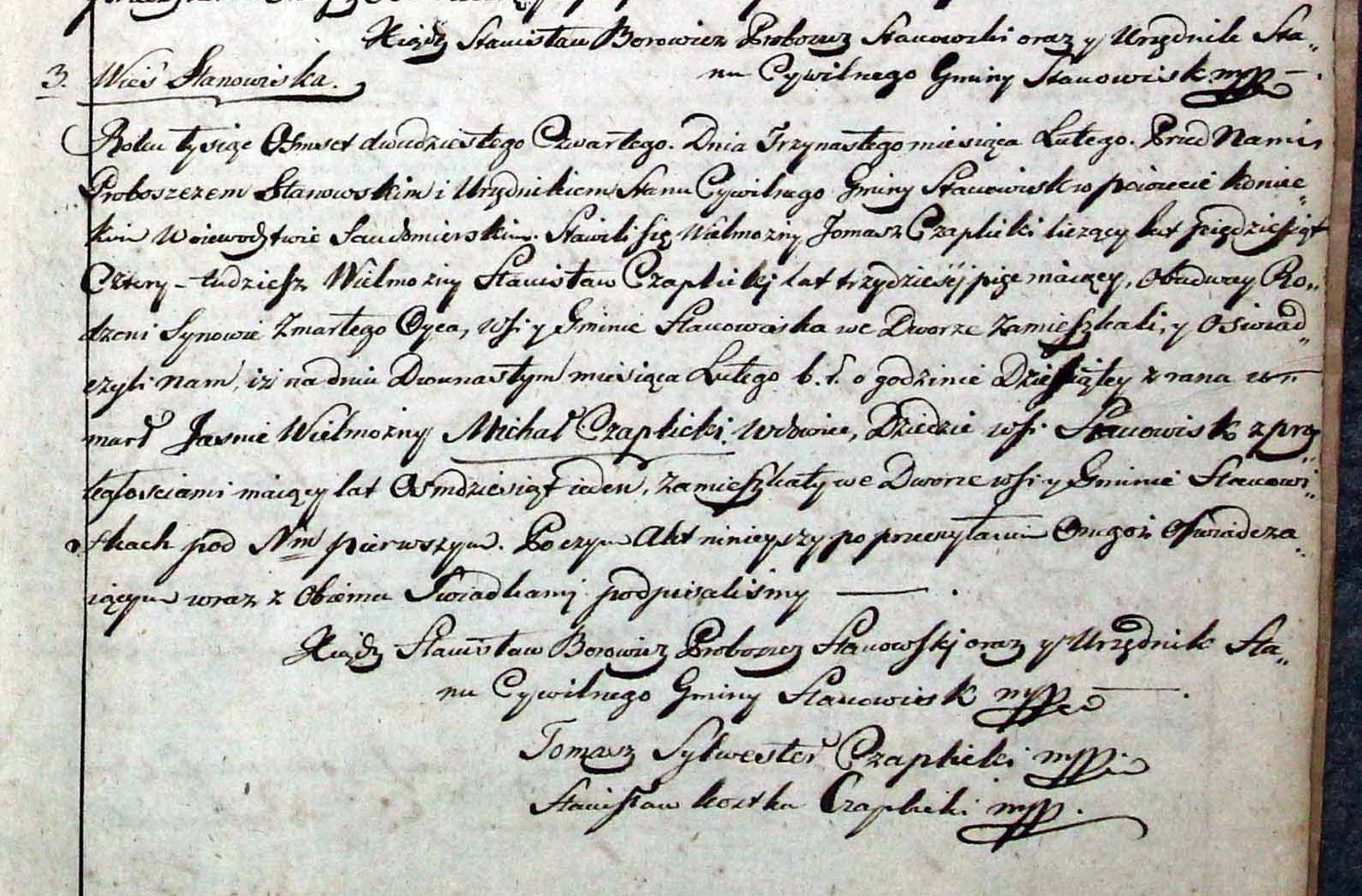 | sw.133562 | sw.909739 | 3.586.85 (3.586.85) | 3.586.90 (3.586.90) | Akt urodzenia: Stanowiska (obecn. woj. świętok.), [bez nru]/1788 [indeks na http://geneteka.genealodzy.pl/] https://familysearch.org/ark:/61903/3:1:3QS7-8992-XQFQ?i=191&wc=9R1B-GPV%3A21713801%2C57993401%2C57993402&cc=1407440 |