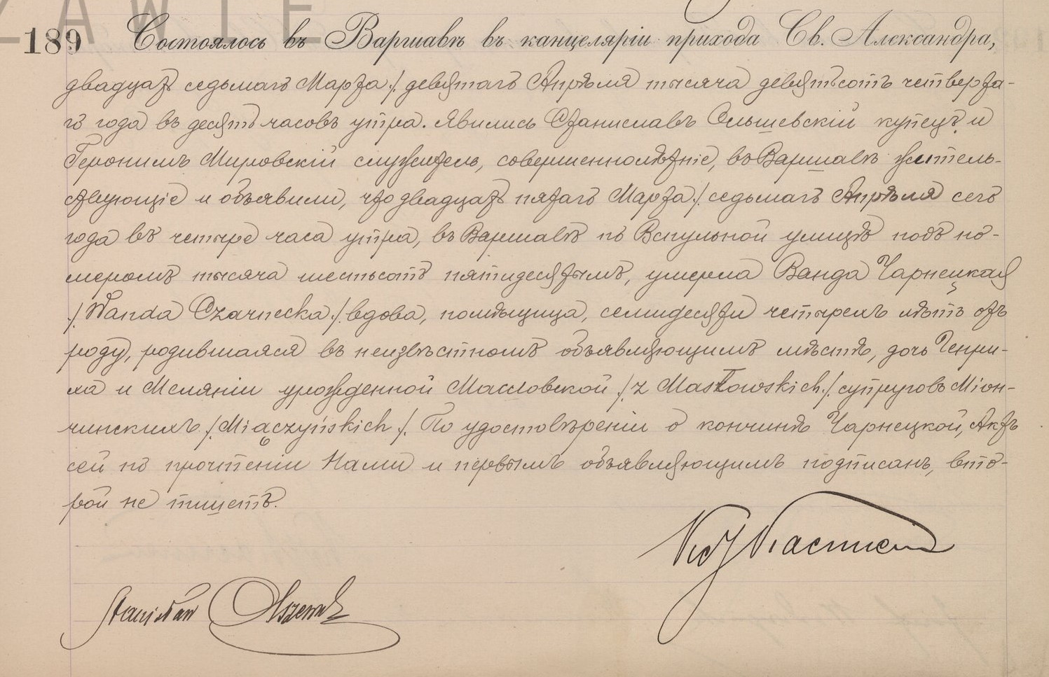 | genetekaz.11341143 | 7 | apr | 1904 | | xpar.1442 | Akt zgonu: Warszawa św. Aleksander (obecn. m. Warszawa), 189/1904 http://localhost/mjm/aleksander_1904_159_32_0316.jpg [podglad] | | Akt zgonu obecny w bazie Geneteka |