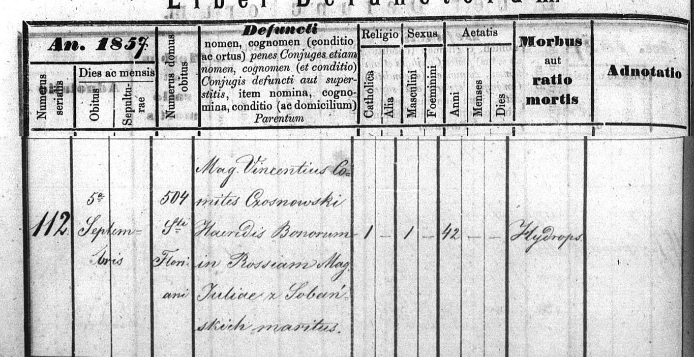 | n.9257 | m | Józef | Wincenty | | | | Czosnowski | | | | | |