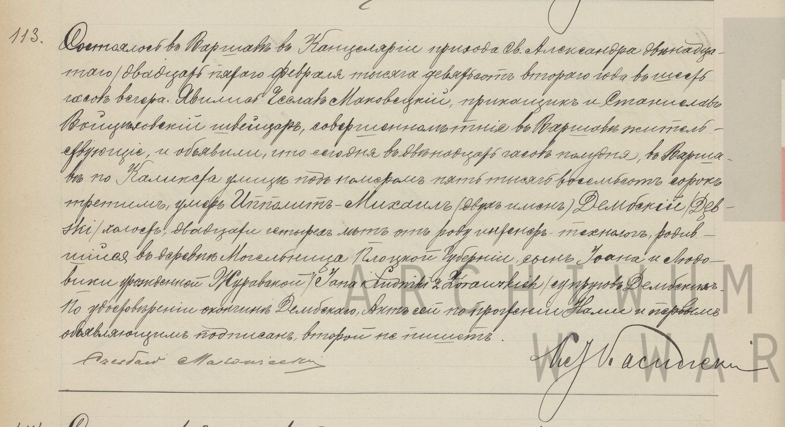 | sw.1040696 | sw.1040696 | 4.413.90 (4.413.90) | 4.413.91 (4.413.91) | Akt zgonu: Warszawa św. Aleksander (obecn. m. Warszawa), 113/1902 [indeks na http://geneteka.genealodzy.pl/] http://localhost/mjm/aleksander_1902_158_212_0307.jpg [podgląd] |