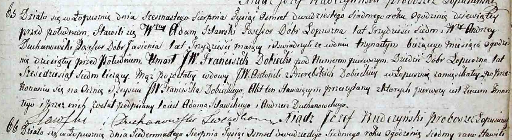 | genetekaz.3929954 | 13 | aug | 1827 | | xpar.3026 | Akt zgonu: Łopuszno (obecn. woj. świętok.), 65/1827 http://metryki.genbaza.pl/genbaza,detail,314621,32 [podglad] | | Akt zgonu obecny w bazie Geneteka |
