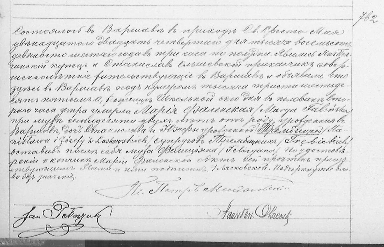 | genetekaz.11418638 | 24 | may | 1896 | xpar.1450 | Akt zgonu: Warszawa św. Krzyż (obecn. m. Warszawa), 762/1896 http://localhost/mjm/krzyz_1896_161_130_0254.jpg [podglad] | Akt zgonu obecny w bazie Geneteka | ||