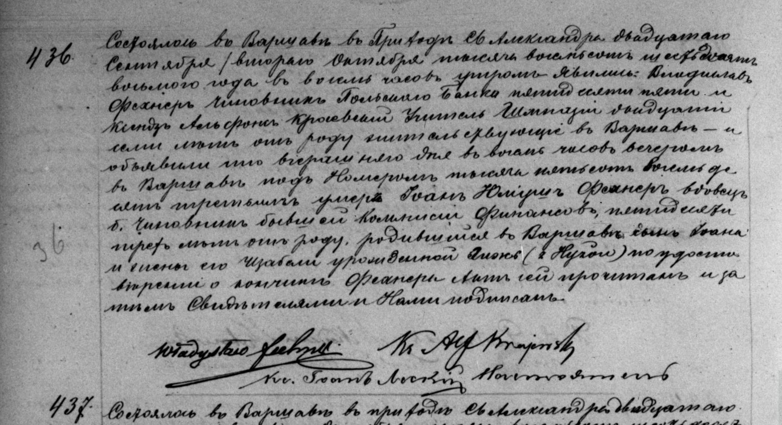 | 5.663.27 | sw.1095345 | sw.1095346 (5.663.25) | sw.1095347 (14.94.112) | Akt małżeństwa: Warszawa św. Jan (obecn. m. Warszawa), 155/1877 [indeks na http://geneteka.genealodzy.pl/] http://metryki.genealodzy.pl/metryka.php?ar=1&zs=0161d&sy=1877&kt=2&skan=154-155.jpg [podgląd] |