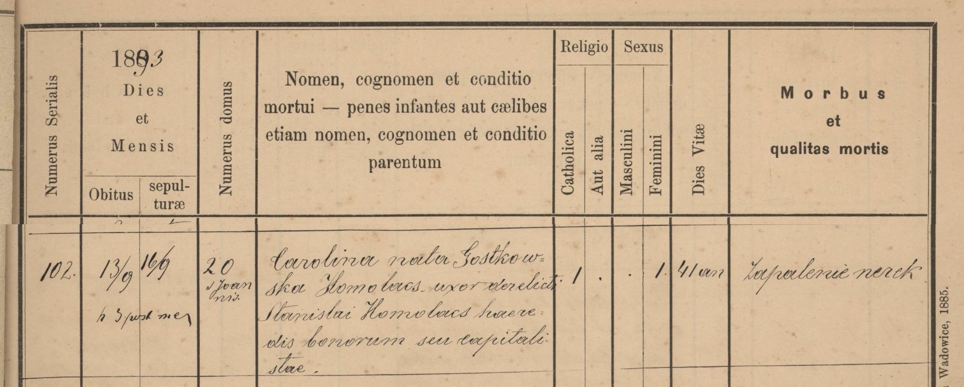 | genetekaiz.1893_2409 | 13 | sep | 1893 | | xpar.481 | Indeks Cmentarza Rakowickiego: 2409/1893 | | Akt zgonu spoza głównych baz |