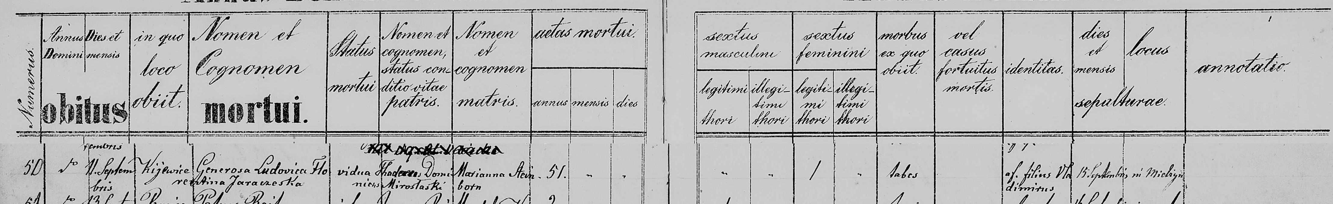 | genetekaz.11008262 | 11 | sep | 1873 | | xpar.4594 | Akt zgonu: Polanowice (obecn. woj. kuj.-pom.), 50/1873 https://www.familysearch.org/ark:/61903/3:1:3Q9M-CSXJ-4S96-H?i=402&cat=736790 [podglad] | | Akt zgonu obecny w bazie Geneteka |