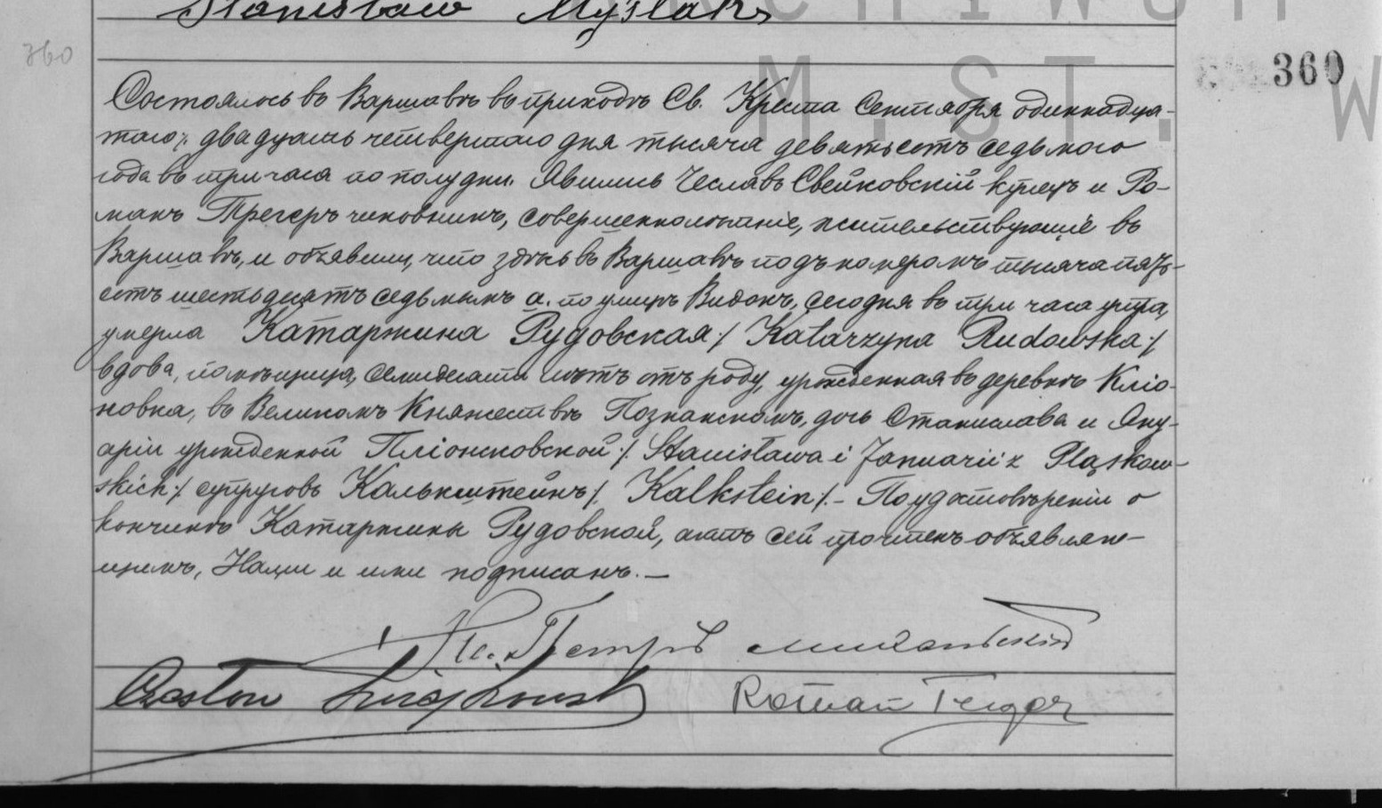 | zi.2.107.r1 | sw.203905 | sw.203906 (9.297.241) | sw.203907 (9.297.240) | Akt małżeństwa: Warszawa św. Aleksander (obecn. m. Warszawa), 12/1886 [indeks na http://geneteka.genealodzy.pl/] http://metryki.genealodzy.pl/metryki.php?op=kt&ar=1&zs=0162d&sy=1886b&kt=2 [podgląd] |